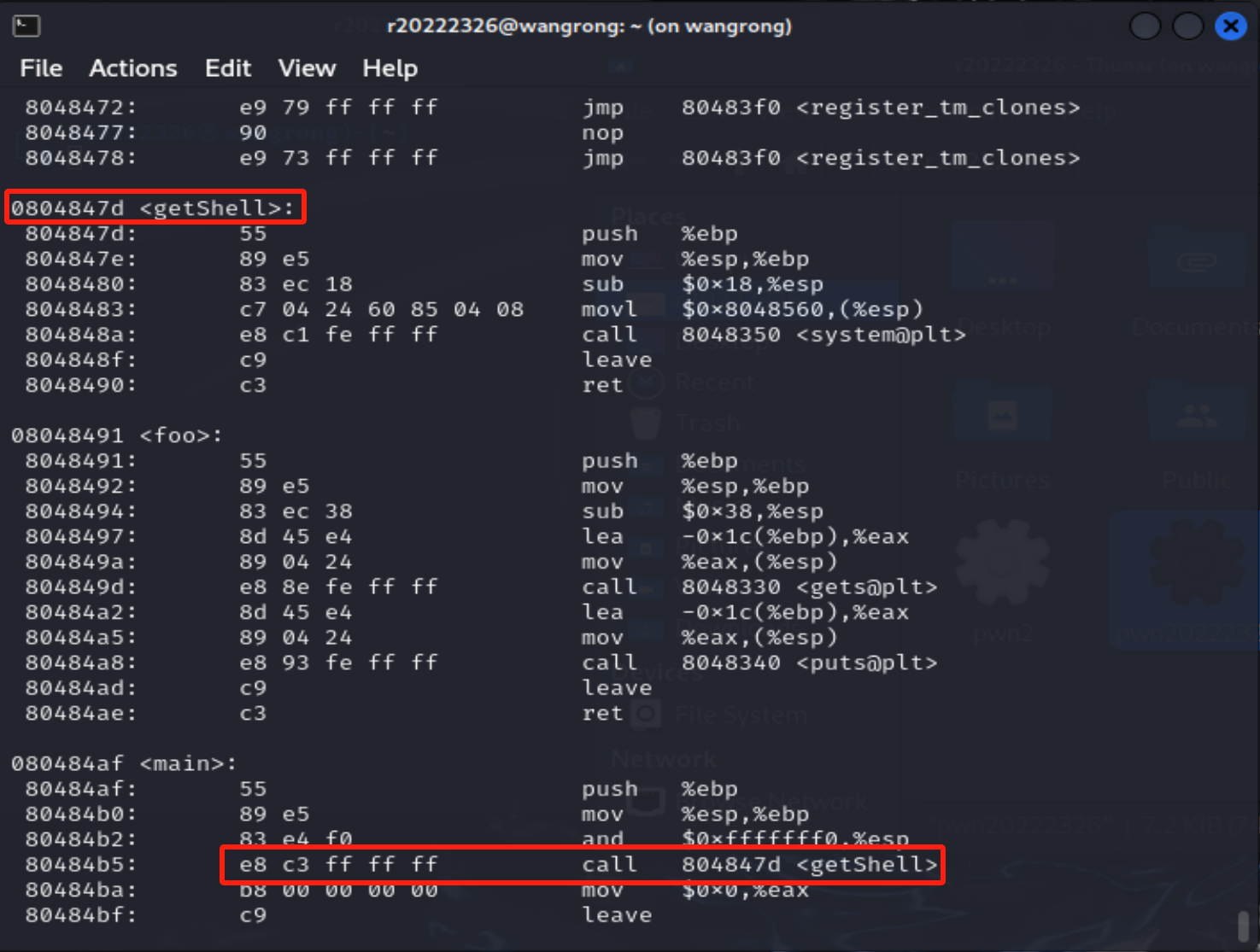 可以看的出来,pwn20222326文件中的main函数中,有一行汇编指令是call 8048491