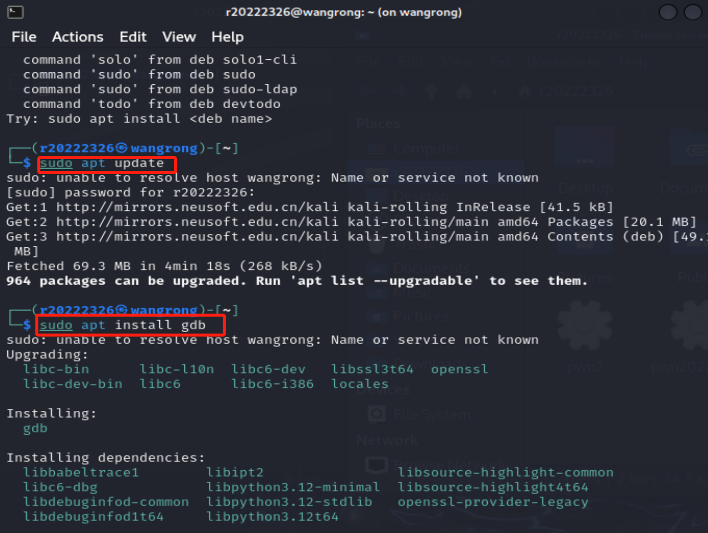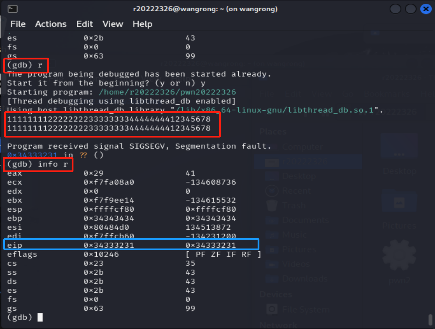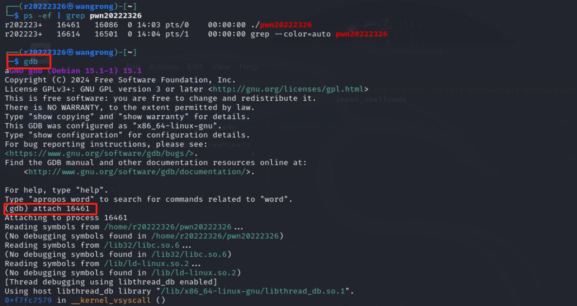 * 另开一个终端,在这个终端里通过gdb调试pwn20222326