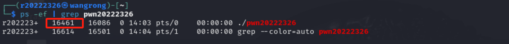 * 通过输入`ps -ef | grep pwn20222326`这个命令来查看pwn20222326的进程号