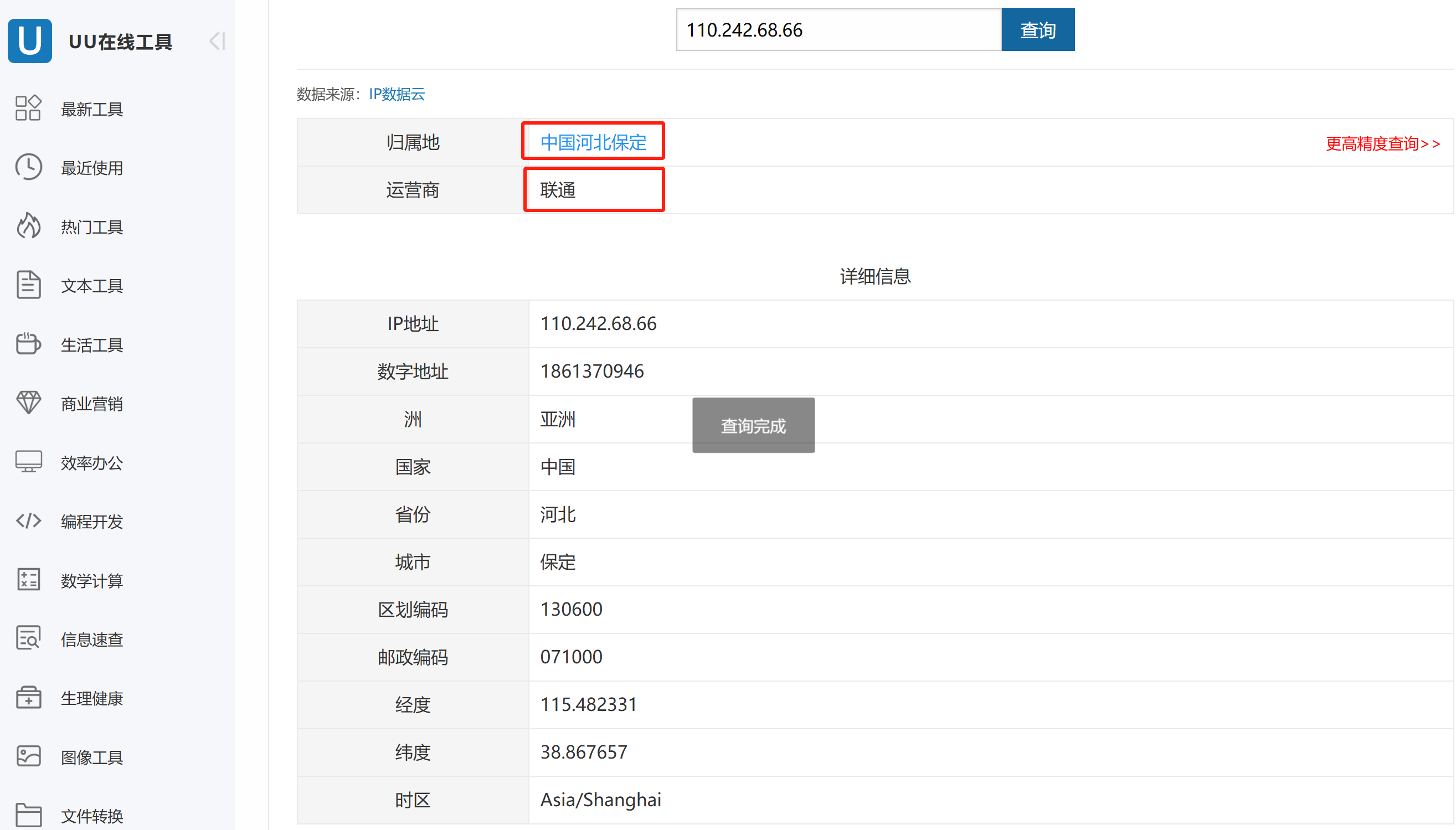 【工具(2)网址:https://uutool.cn/ip/】