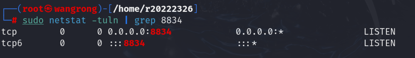 (2)解压之后,通过systemctl start nessusd来启动其服务,并通过sudo netstat -tuln | grep 8834来查看其服务状态。【8834是nessus默认的端口号】
