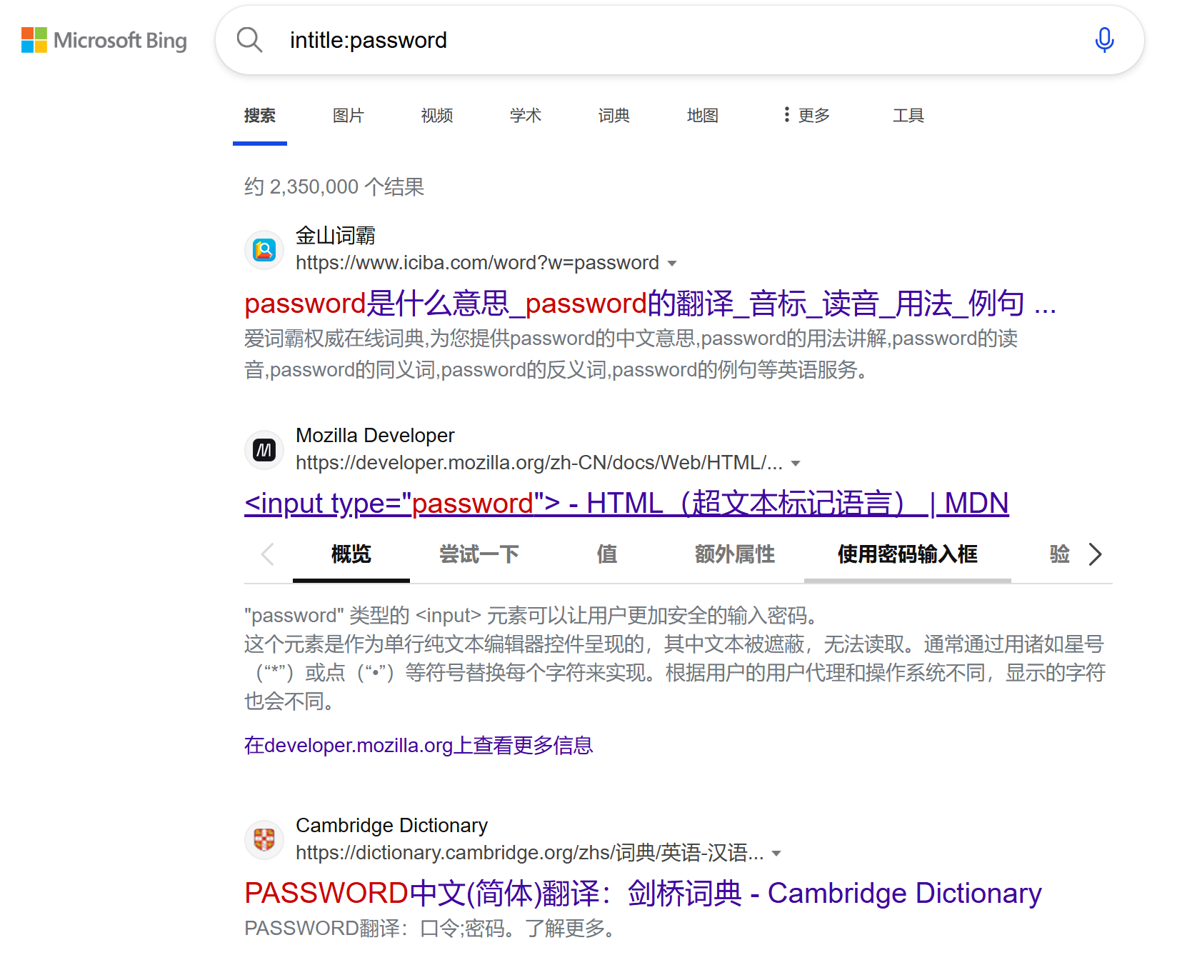 intitle:password查找所有包含“password”字样的标题的页面