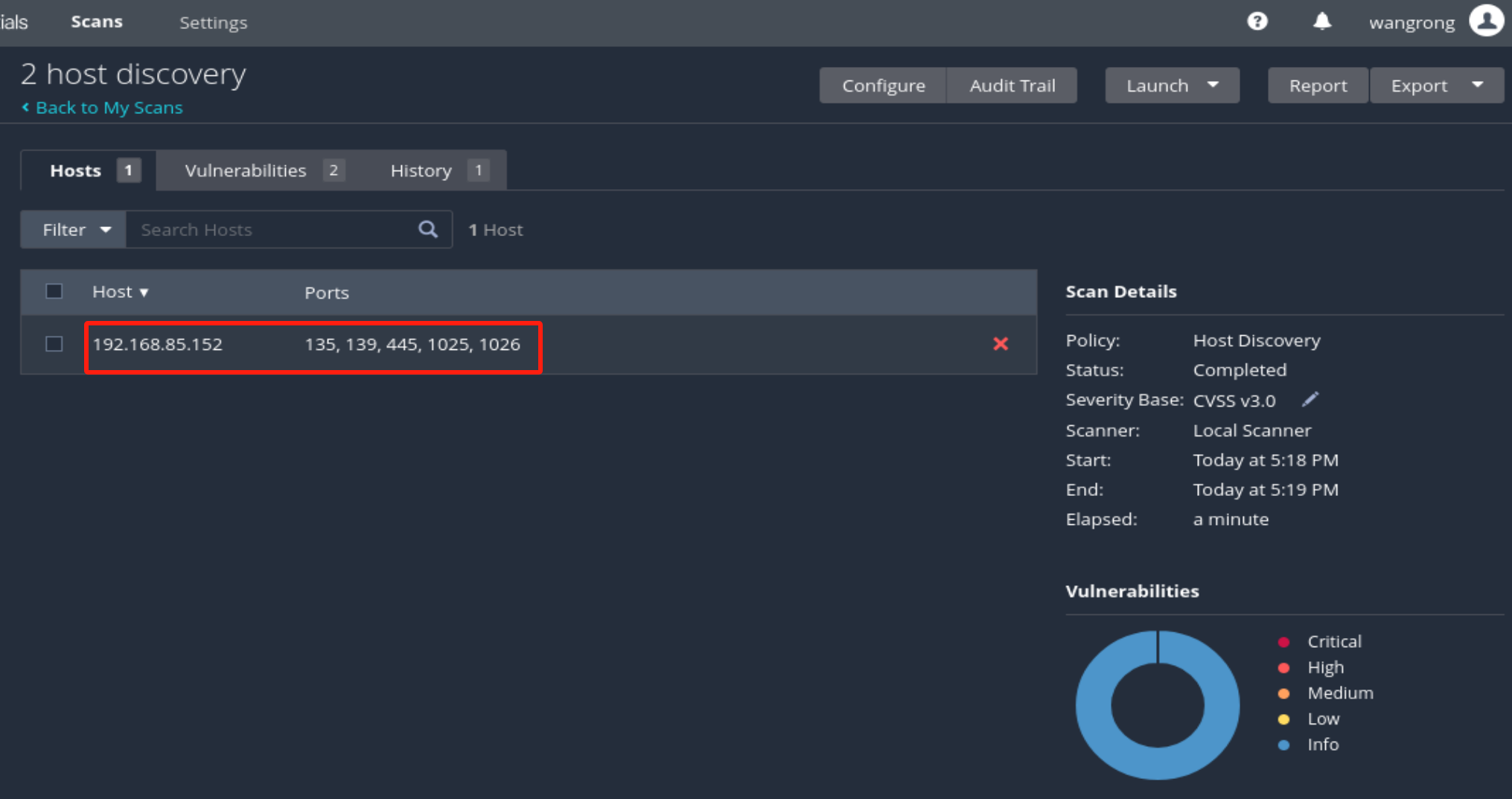 + new scan来新建一个扫描,选择主机发现即 Host Disvovery】输入靶机IP地址192.168.85.152