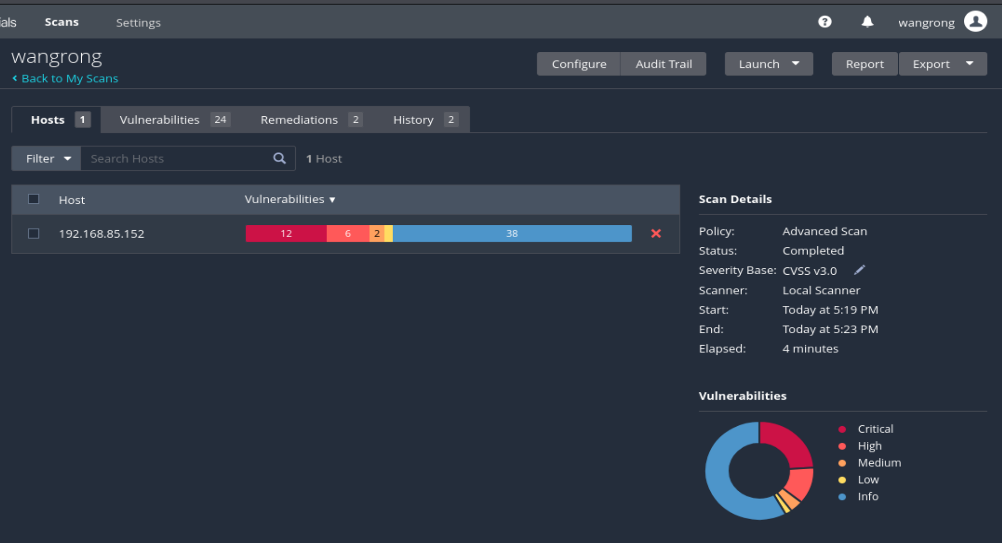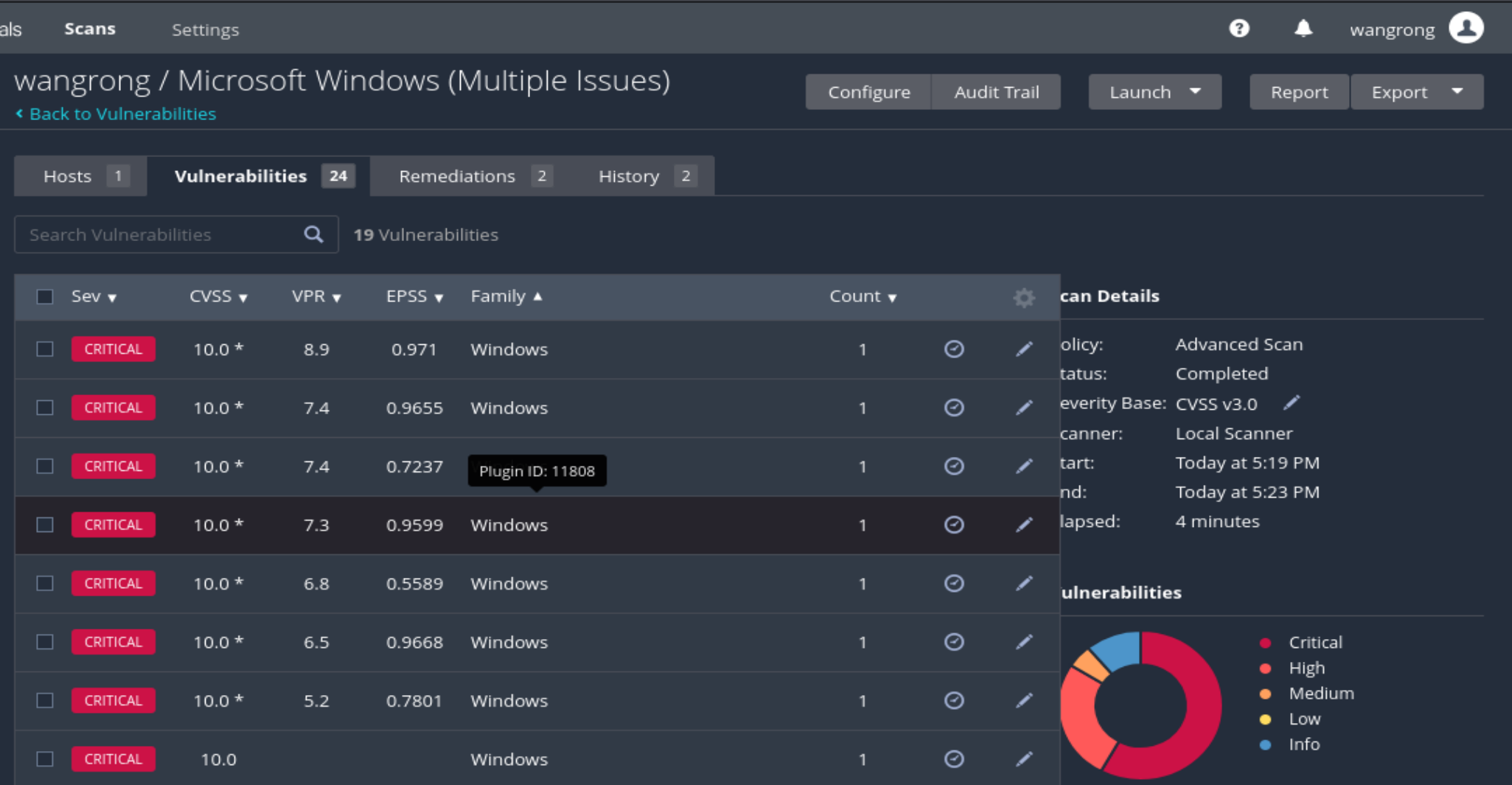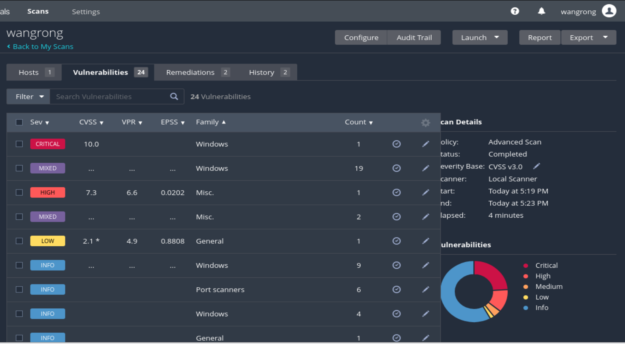 【下图中可以看出,有24个vulnerablities,其中包括超危漏洞和高危漏洞】