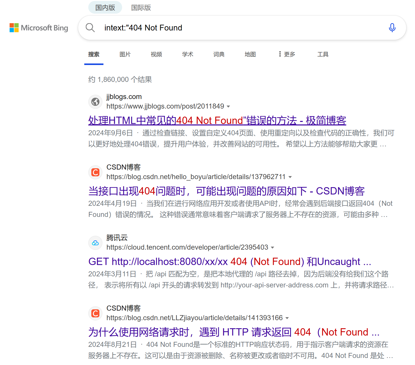 intext:"404 Not Found"查找包含“404 Not Found”文本的网页