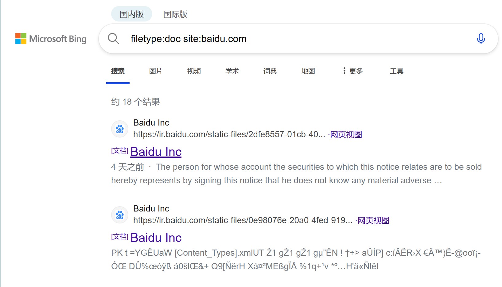 filetype:doc site:baidu.com搜索在百度网站上找到的 .doc 或 .docx 文件。