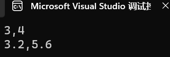 #include <iostream> using std::cout; using std::endl; //类A的定义 class A { public: A(int x0, int y0) : x{ x0 }, y{ y0 } {} void show() const { cout << x << "," << y << endl; } private: int x, y; }; //类B的定义 class B { public: B(double x0, double y0) : x{ x0 }, y{ y0 } {} void show() const { cout << x << "," << y << endl; } private: double x, y; }; void test() { A a(3, 4); a.show(); B b(3.2, 5.6); b.show(); } int main() { test(); }