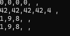 #include <iostream> #include <vector> template<typename T> void output(const T& obj) { for (auto& item : obj) std::cout << item << ","; std::cout << "\b\b \n"; } int main() { using namespace std; vector<int> v1; vector<int> v2(5); vector<int> v3(5, 42); vector<int> v4{ 1, 9, 8, 4 }; vector<int> v5{ v4 }; output(v2); output(v3); output(v4); output(v5); }