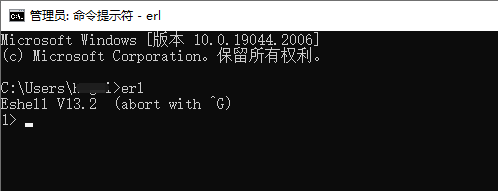 4) 验证是否配置成功:打开cmd,输入erl,看到我们的erlang版本号就说明配置成功了