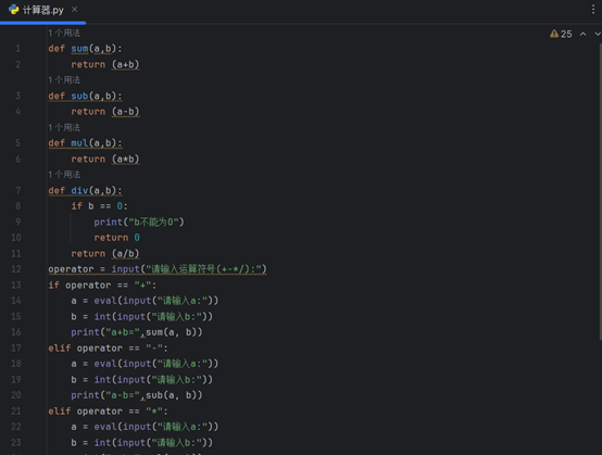 接着编写当我们输入加减乘除等符号时,计算机的运转及提示语显示的编码