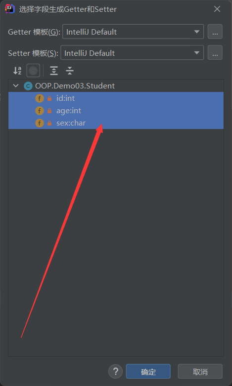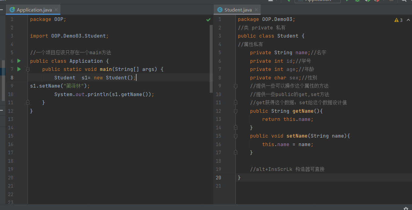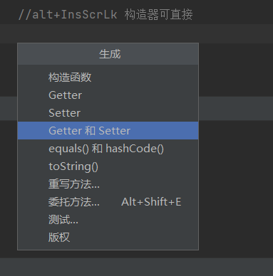 - 点击alt+InsScrLk组合键快速构建get和set方法;
