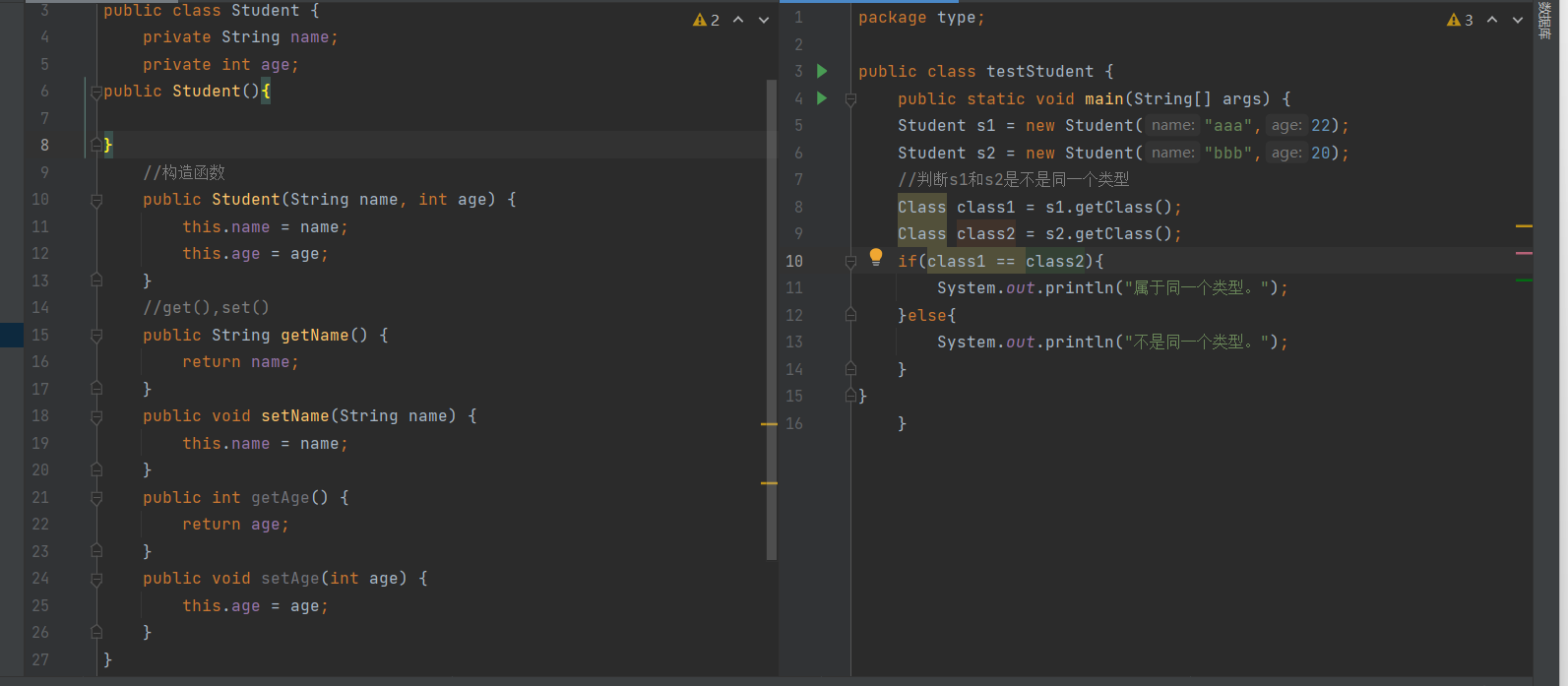 if(this.name.equals(s.getName())&&this.age == s.getAge()){