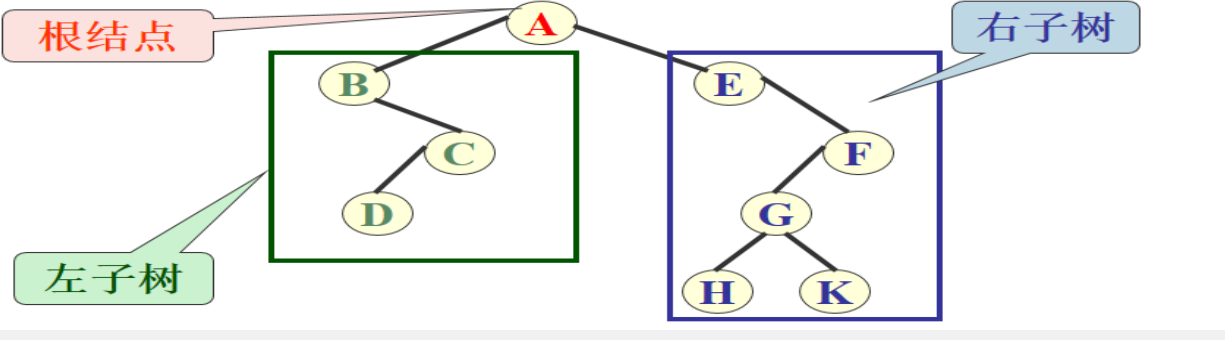 - 二叉树:是一个有限的结点集合,这个集合或者为空,或者由一个根结点和两棵互不相交的称为左子树和右子树的二叉树组成。