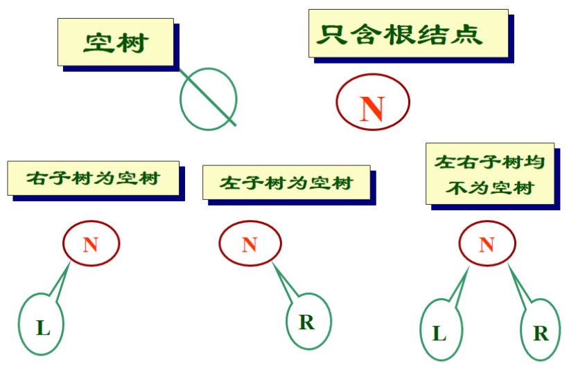 - 二叉树的五种基本形态: