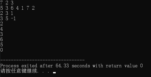 1 #include<iostream> 2 using namespace std; 3 #define ll long long 4 int a[1000000];//原数组 5 int d[1000000];//差分数组 6 int tre[1000000];//树状数组 7 int n; 8 int sum(int i)//[1,i]sum 9 { 10 int s=0; 11 while(i>0){ 12 s+=tre[i]; 13 i-=i&-i; 14 } 15 return s; 16 } 17 int update(int i,int value)//a[i]+=value 18 { 19 while(i<=n){ 20 tre[i]+=value; 21 i+=i&-i; 22 } 23 } 24 int main() 25 { 26 int t,q,m; 27 cin>>n>>t>>q;//n个数,t次修改,q次询问 28 for(int i=1;i<=n;i++){ 29 cin>>a[i]; 30 d[i]=a[i]-a[i-1]; 31 update(i,d[i]); 32 } 33 int l,r,c; 34 while(t--){ 35 cin>>l>>r>>c; 36 d[l]+=c;//差分数组更新 37 d[r+1]-=c; 38 update(l,c);//树状数组更新 39 update(r+1,-c); 40 } 41 while(q--){ 42 cin>>l;//查询l点具体数值 43 cout<<sum(l)<<endl; 44 } 45 return 0; 46 }