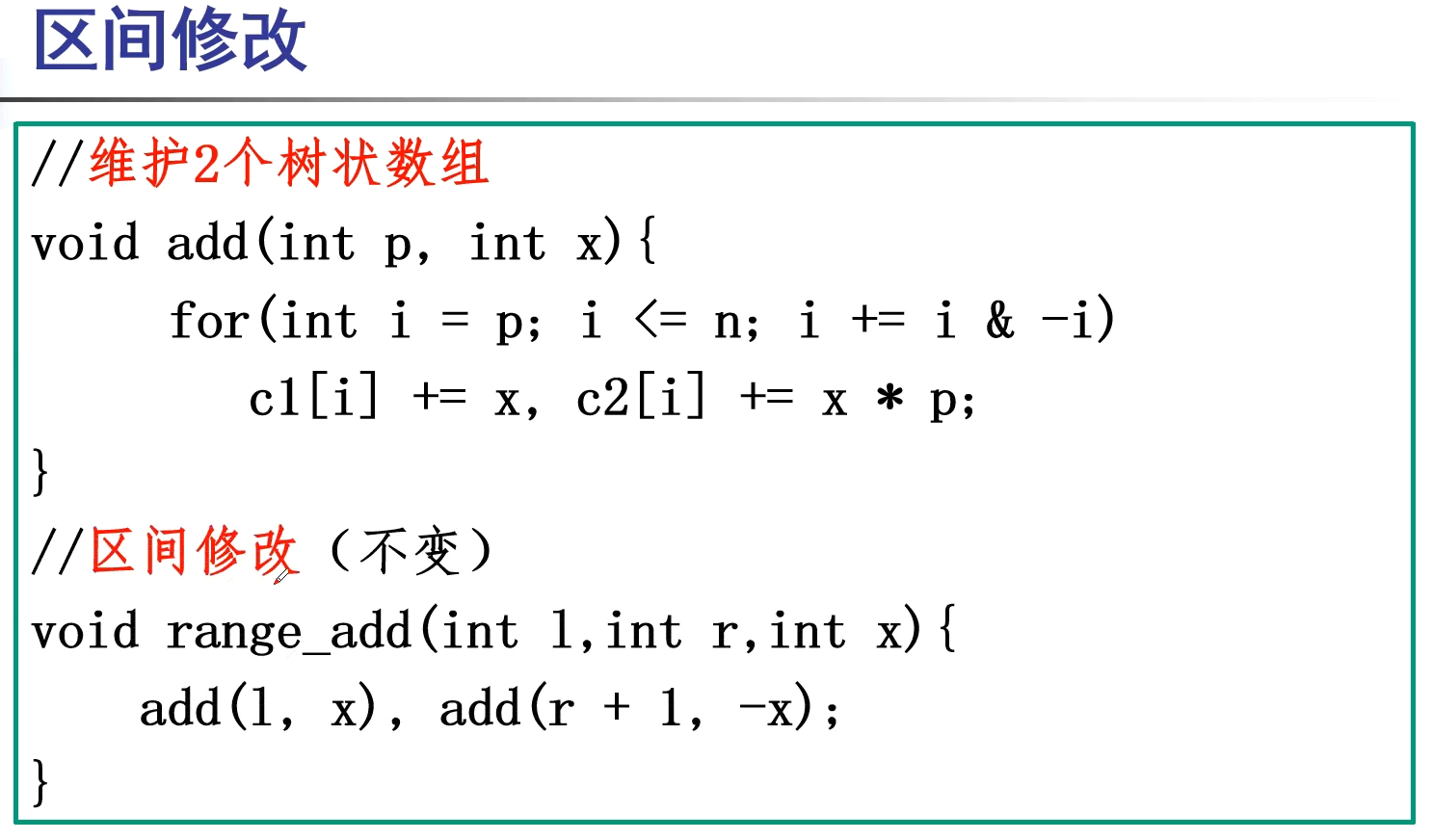 1 #include<iostream> 2 using namespace std; 3 #define ll long long 4 int a[1000000];//原数组 5 int tre[1000000];//树状数组 6 int n; 7 int sum(int i)//[1,i]sum 8 { 9 int s=0; 10 while(i>0){ 11 s+=tre[i]; 12 i-=i&-i; 13 } 14 return s; 15 } 16 int update(int i,int value)//a[i]+=value 17 { 18 while(i<=n){ 19 tre[i]+=value; 20 i+=i&-i; 21 } 22 } 23 int main() 24 { 25 int t,q; 26 cin>>n>>t>>q;//n个数,t次修改,q次询问 27 for(int i=1;i<=n;i++){ 28 cin>>a[i]; 29 update(i,a[i]); 30 } 31 int l,r,c; 32 while(t--){ 33 cin>>l>>c; 34 update(l,c); 35 } 36 while(q--){ 37 cin>>l>>r; 38 cout<<sum(r)-sum(l-1)<<endl; 39 } 40 return 0; 41 }