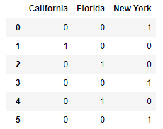 # ⽣成由State变量衍⽣的哑变量 dummies = pd.get_dummies(Profit.State) dummies