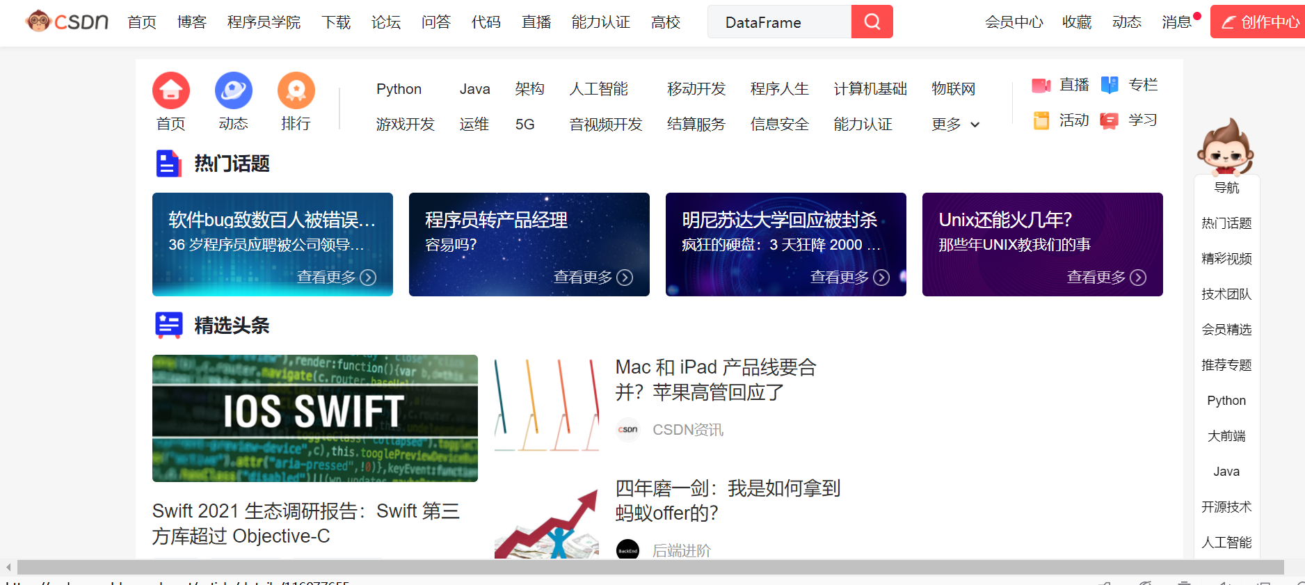 我测评的软件是 CSDN官网,因为平常的时候在WEB端使用比较多,而且里面有专业的中文IT技术社区: CSDN.NET;移动端开发者专属APP: CSDN APP、CSDN学院APP;新媒体矩阵微信公众号:CSDN资讯、程序人生、GitChat、CSDN学院、AI科技大本营、区块链大本营、CSDN云计算、GitChat精品课、人工智能头条、CSDN企业招聘;IT技术培训学习平台: CSDN学院;技术知识移动社区: GitChat;IT人力资源服务:科锐福克斯;高校IT技术学习成长平台:高校俱乐部。