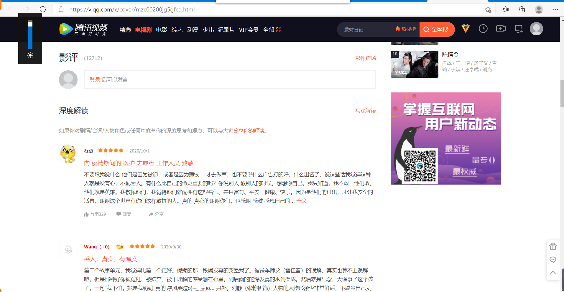 打开《在一起》的网页,进入评论界面,多次点击查看更多评论进行网页的分析