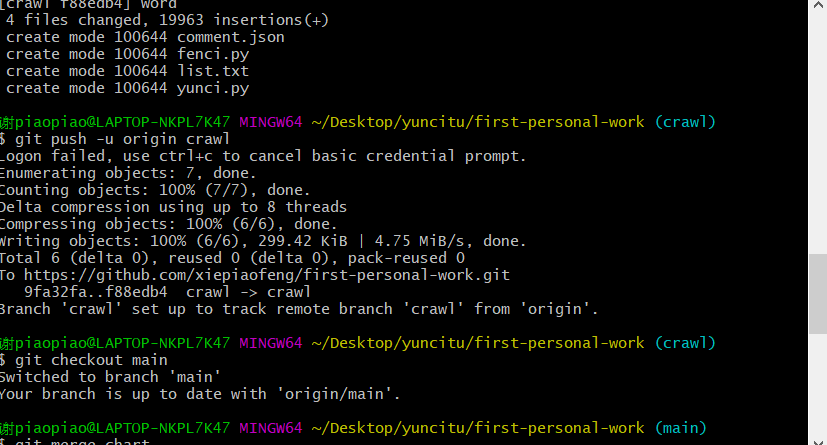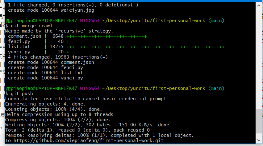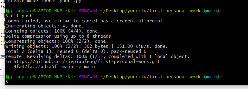 | 作业源代码 | https://github.com/xiepiaofeng/first-personal-work/tree/main |