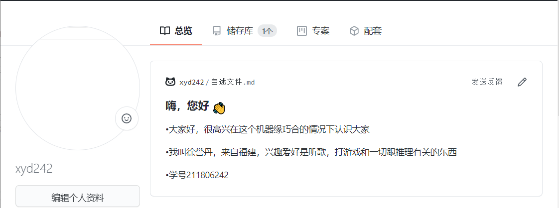 我叫徐誉丹,兴趣爱好就是听歌,打游戏和一切有关推理的东西。 - 个人计划: