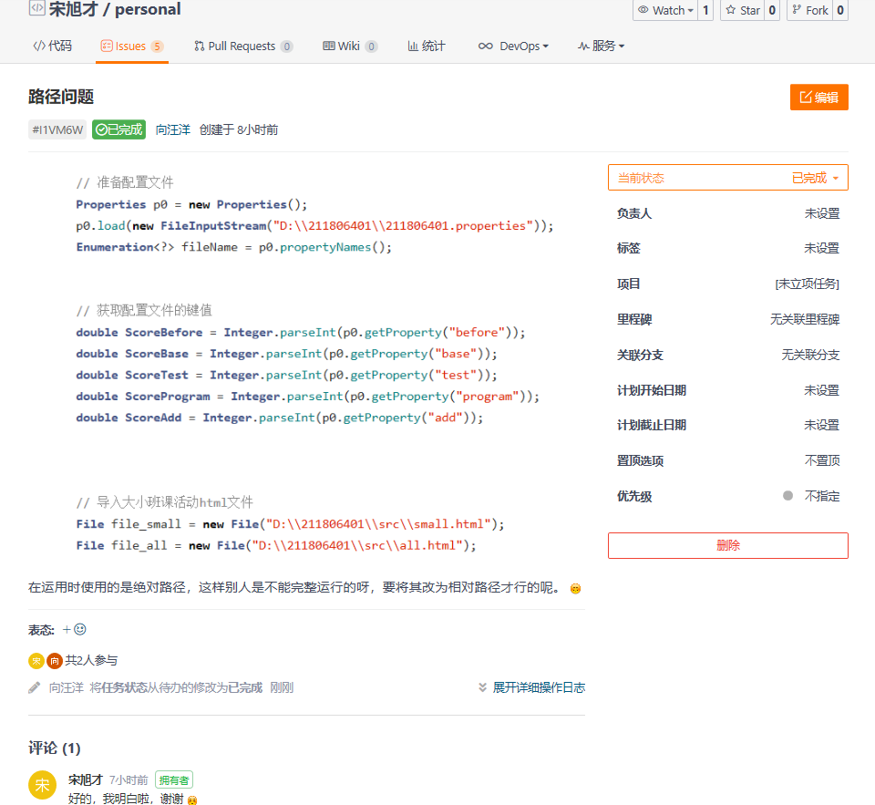 | 作业源代码 | https://gitee.com/xiang-wangyang/personal |