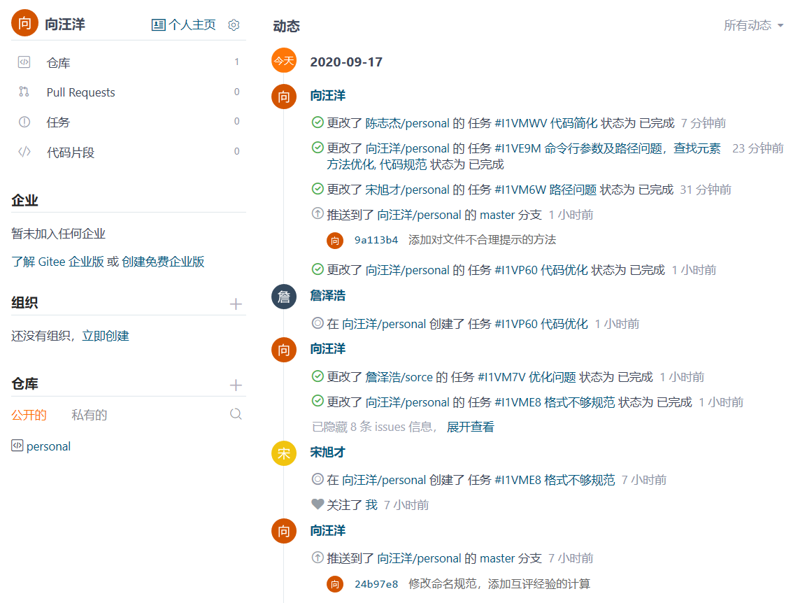 2、林小岚:https://gitee.com/lin-xiaolan/personal