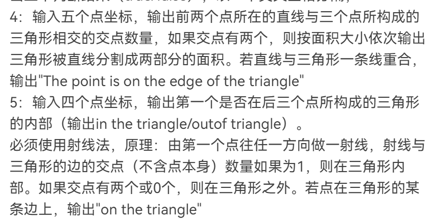 public String getArea(double x1,double y1,double x2,double y2,double x3,double y3,double x4,double y4,double x5,double y5) {//通过叉乘的是否同号判断交点的个数