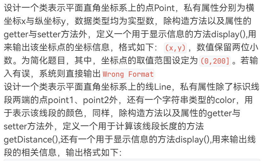 第一题很简单,就是除了main类以外还有两个类,line和point类其中line类中的私有属性为point类,所以在line类中可以掉用point类中的方法。