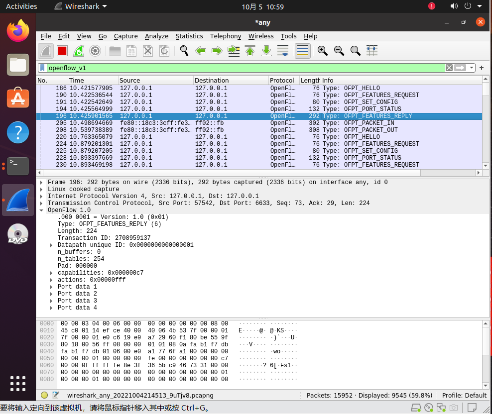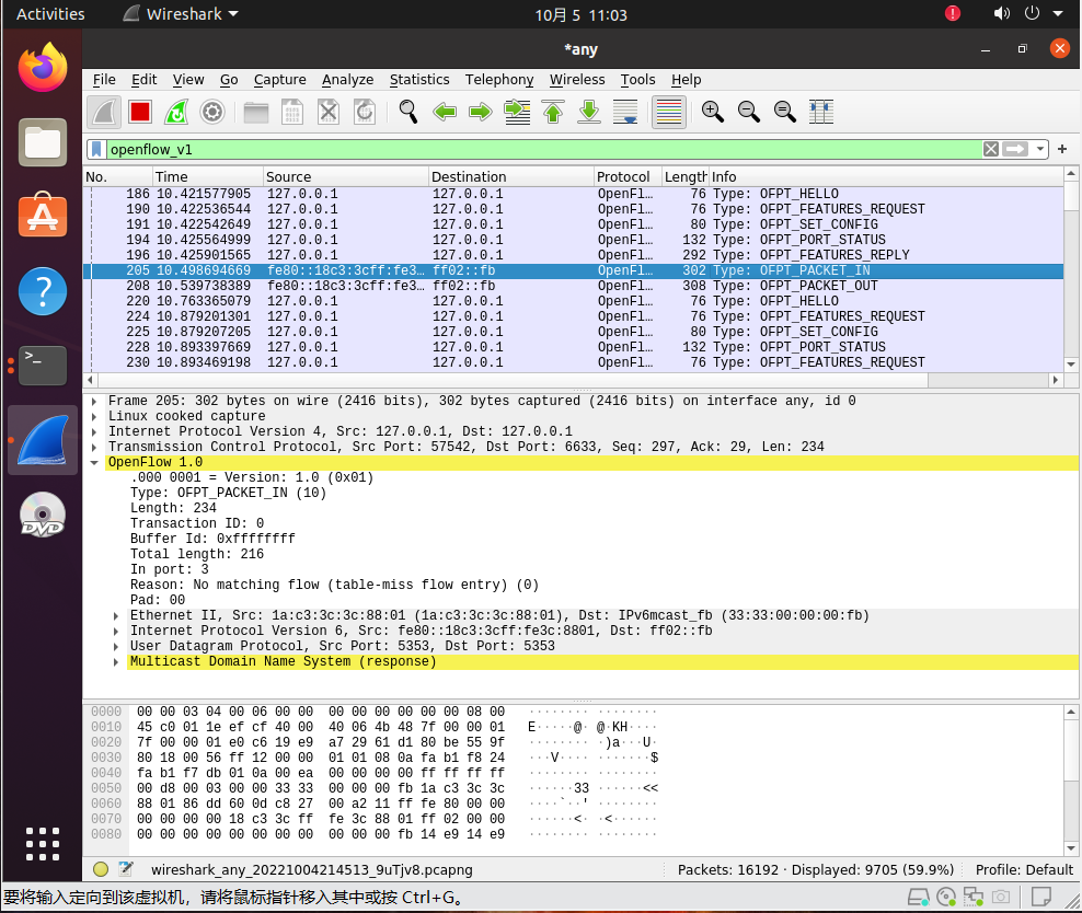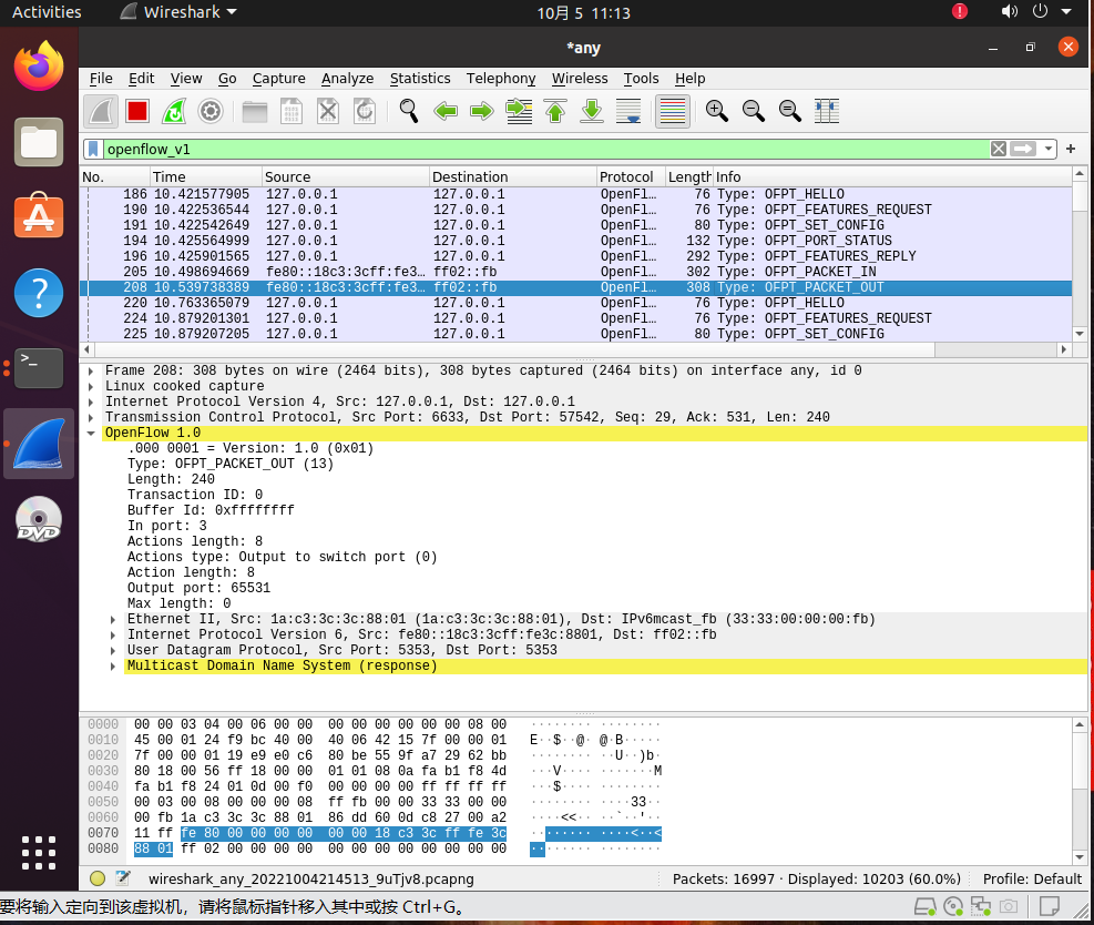 - 能够运用 wireshark 对 OpenFlow 协议数据交互过程进行抓包;