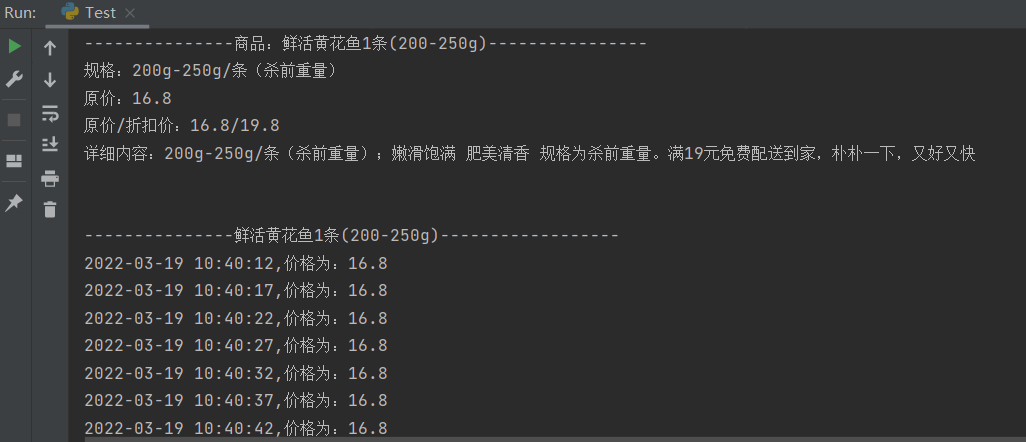 nowTimeandprint = time.strftime('%Y' + '-' + '%m' + '-' + '%d' + ' %H:%M:%S,价格为:' + price)