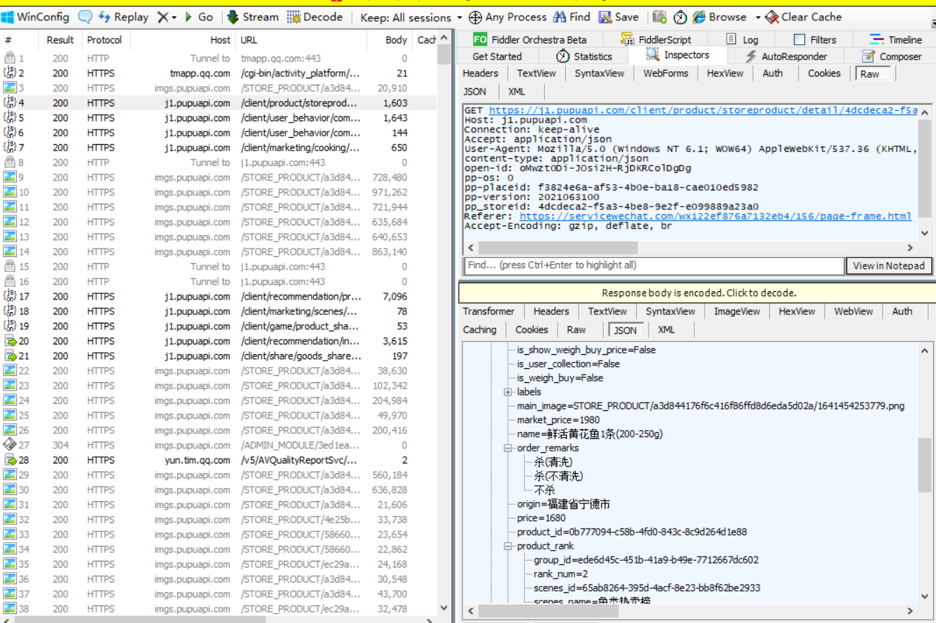 1.基础:使用 fiddler 抓包工具+代码,实时监控朴朴上某产品的详细价格信息