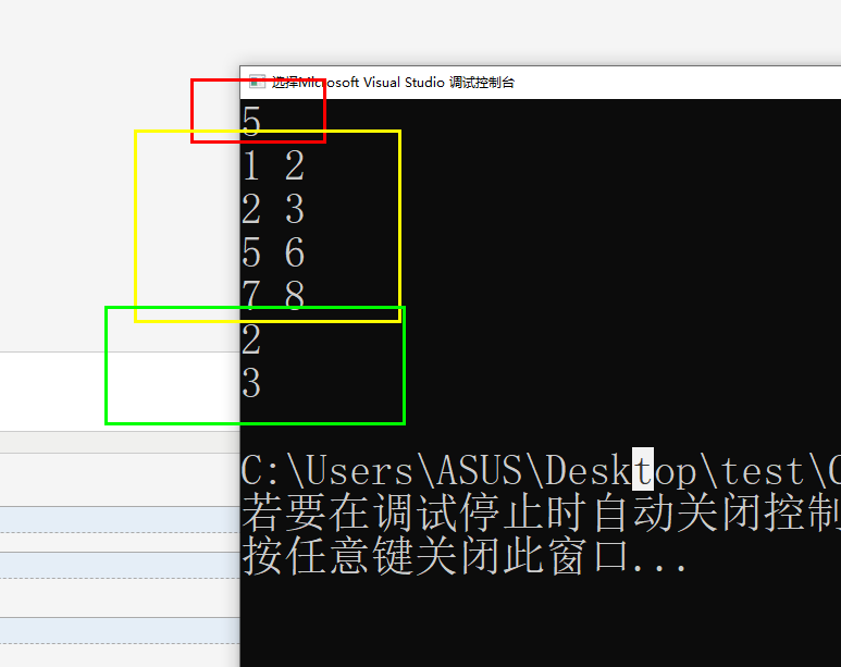 int main() { int t, a, b; cin >> t; vector<vector<int>> m; for (int i = 1; i < t; ++i) { vector<int> m1; cin >> a >> b; m1.push_back(a); m1.push_back(b); m.push_back(m1); } print_::print1 prn; cout << m[1][0] << endl; cout << m[1][1] << endl; return 0; }