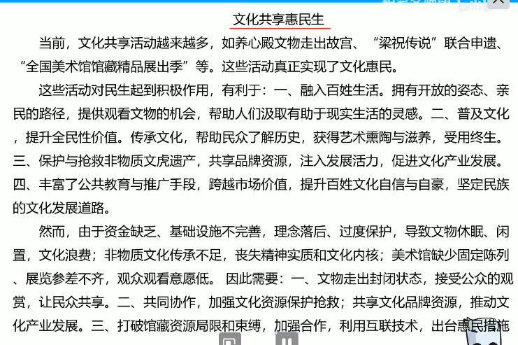 假设你是某文化报的记者,请根据给定资料4-5,以“文化共享惠民生”为题,写一篇短评。(25分)