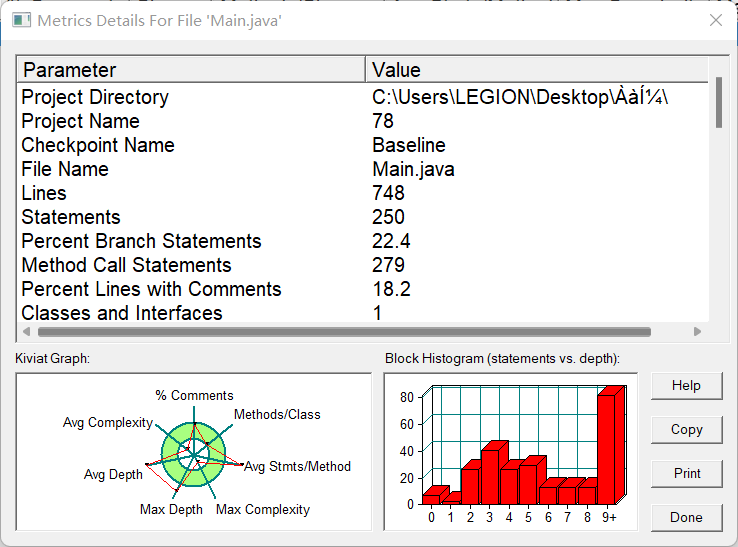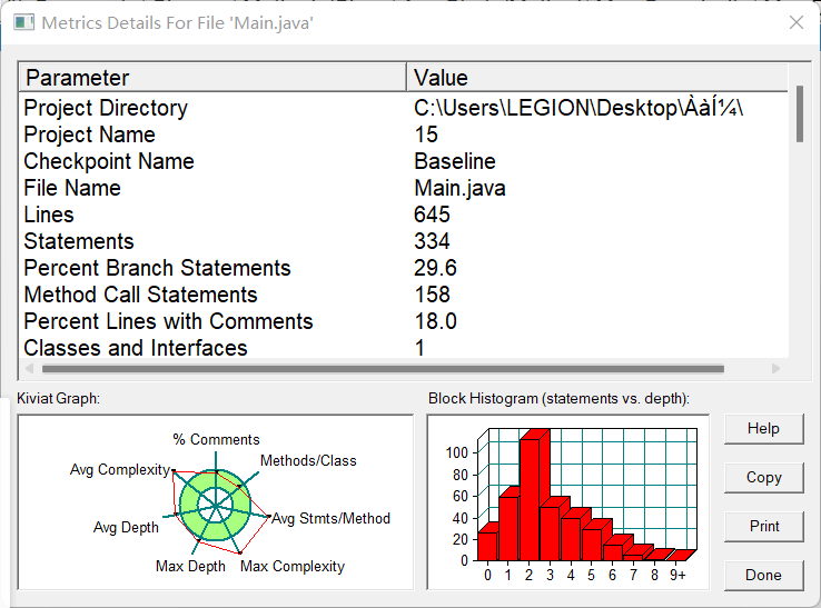 ①平均圈复杂度和函数深度超标,圈复杂度大说明程序代码的判断逻辑复杂,代码质量较低(其实是因为我把判断输入是否正确的代码大部分都放在了主函数,所以主函数写的过于冗长)