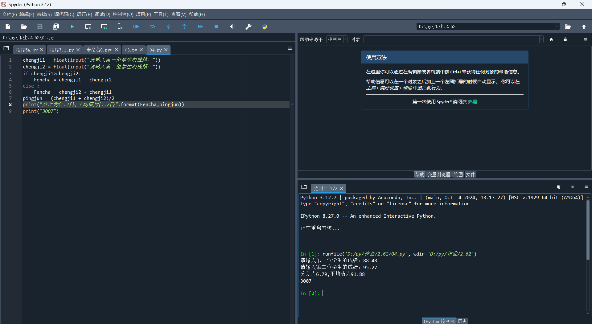 print("分差为{:.2f},平均值为{:.2f}".format(Fencha,pingjun))