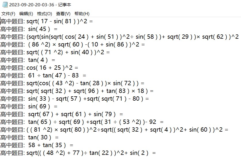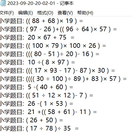 5、生成的题目将以“年-月-日-时-分-秒.txt”的形式保存,每个账号一个文件夹。每道题目有题号,每题之间空一行;