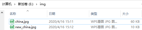 #将原始图片与新图片保存成文件,观察文件的大小。