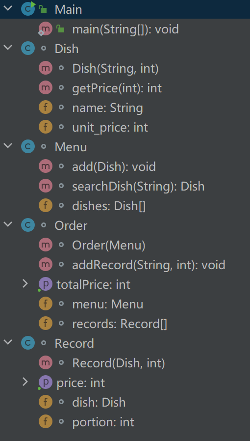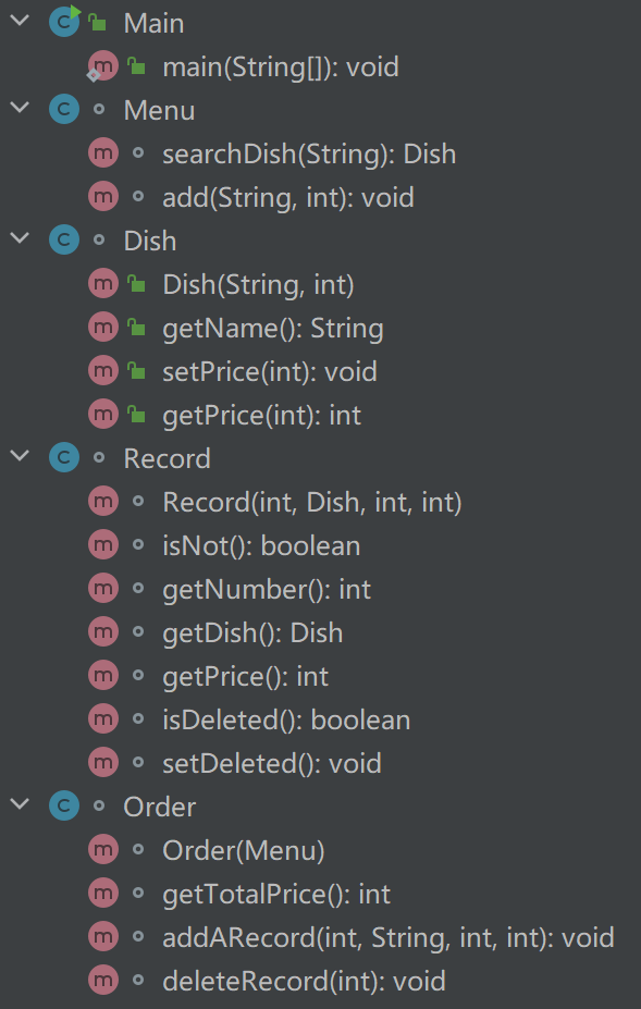 修改部分:与菜单计价程序-1相比,修改部分主要为为菜单菜品的输入和点单菜品的删除