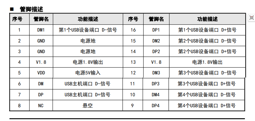 3.上行端口内置 1.5K 上拉电阻和下行端口内置15K 下拉电阻