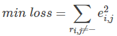 然后构造损失函数,损失函数的构造有很多方法。一般采用平方构造法,即使用原始的矩阵与重新构建的矩阵之间的误差的平方作为损失函数。如果R(i,j)已知,则R(i,j)的误差平方和为: