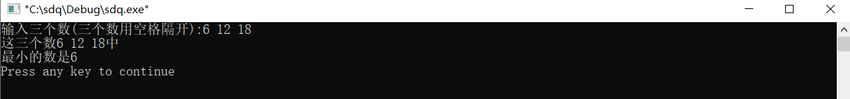 printf("这三个数%d %d %d中\n最小的数是%d\n",a,b,c,min);