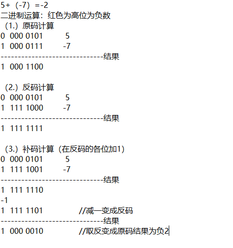 正数即本身 | 取反码的二进制结果各位加1变成了 逢二进一(绿色字体) |