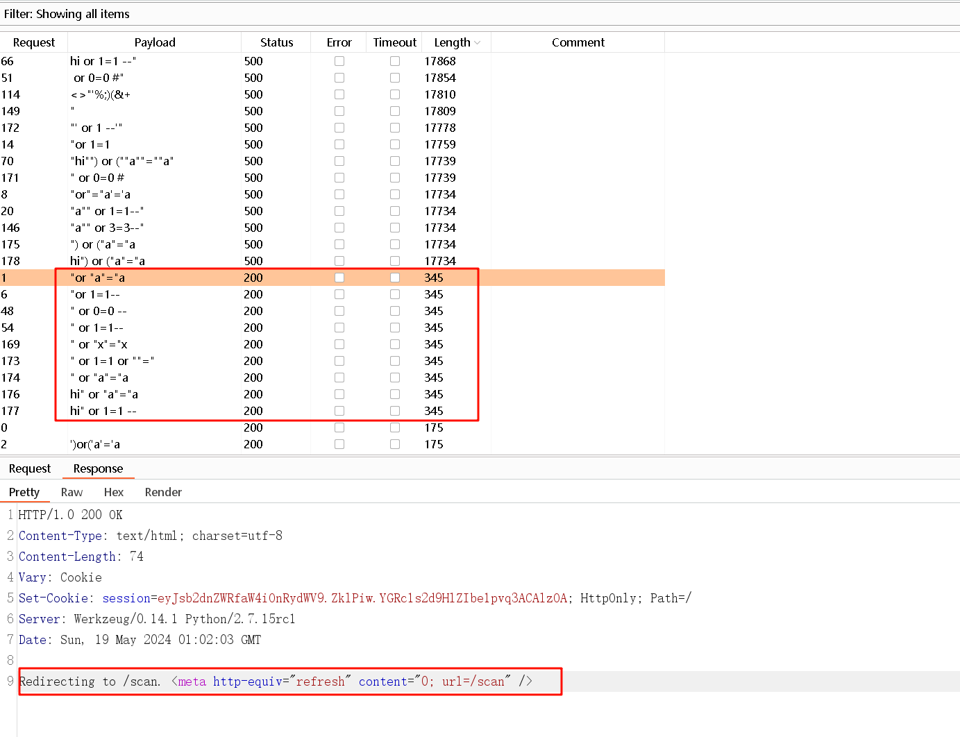 使用sqlfuzz发现存在sql,并且重定向到了/scan目录下