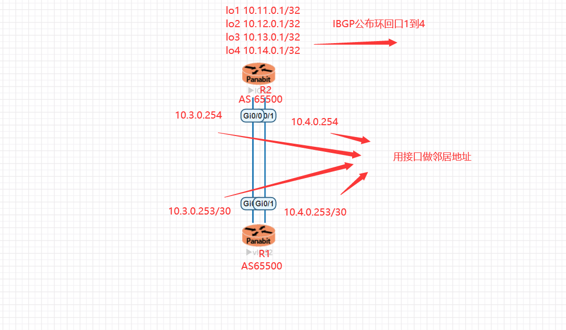 neighbor 10.3.0.253 remote-as 65500 //公布邻居