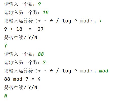 choice = input("请输入运算符(+ - * / log ^ mod):")