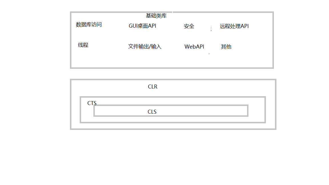 例如,基础类库定义了一些可创建任意类型软件应用程序的类型,例如,使用ASP.NET创建Web站点,使用WCF创建网络服务,使用WPF创建桌面GUI应用程序,等等,基础类库还定义了另外一些类型,可以与特定计算机上的XML文档、本地目录和系统文件系统互动,通过ADO.NET与关系数据库交流,等等,今天先介绍到这,下一次介绍C#的优点,最后附上 CLR、CTS、CTS和基础类库的关系图。渣渣画图差,别介意 哈哈哈哈~~~~~~~~~