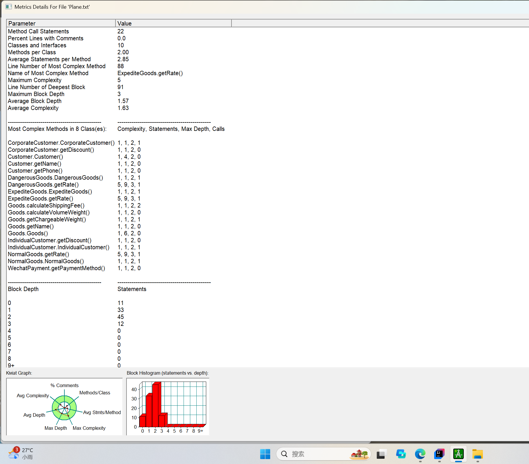 通过SourceMonitor工具对两次题目集的代码进行静态分析,生成的报表数据可反映代码的结构质量和可维护性。以下是关键指标对比: