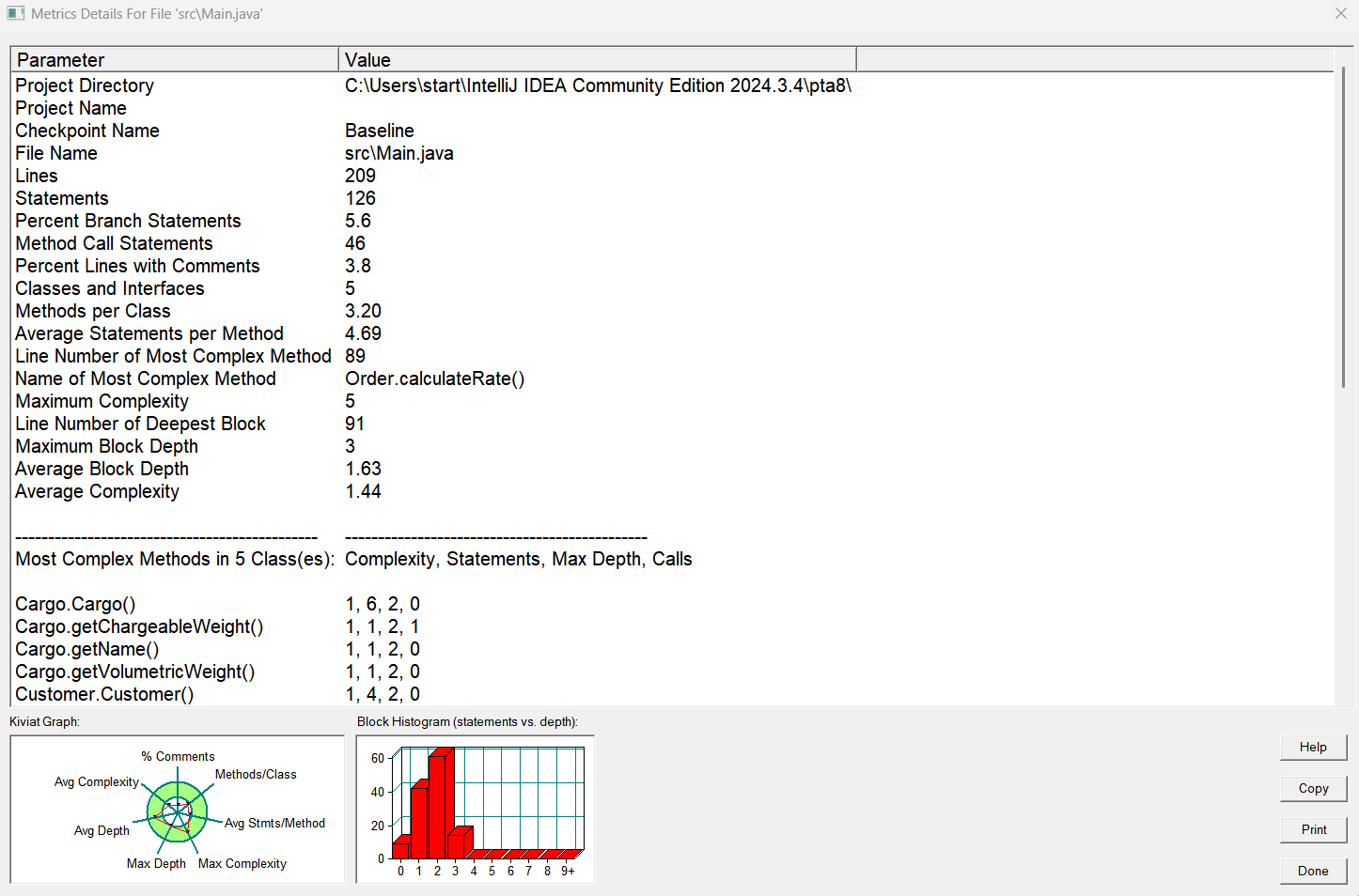 最高复杂度方法:Order.calculateRate()(复杂度为5),包含多层条件分支(4个if-else)。