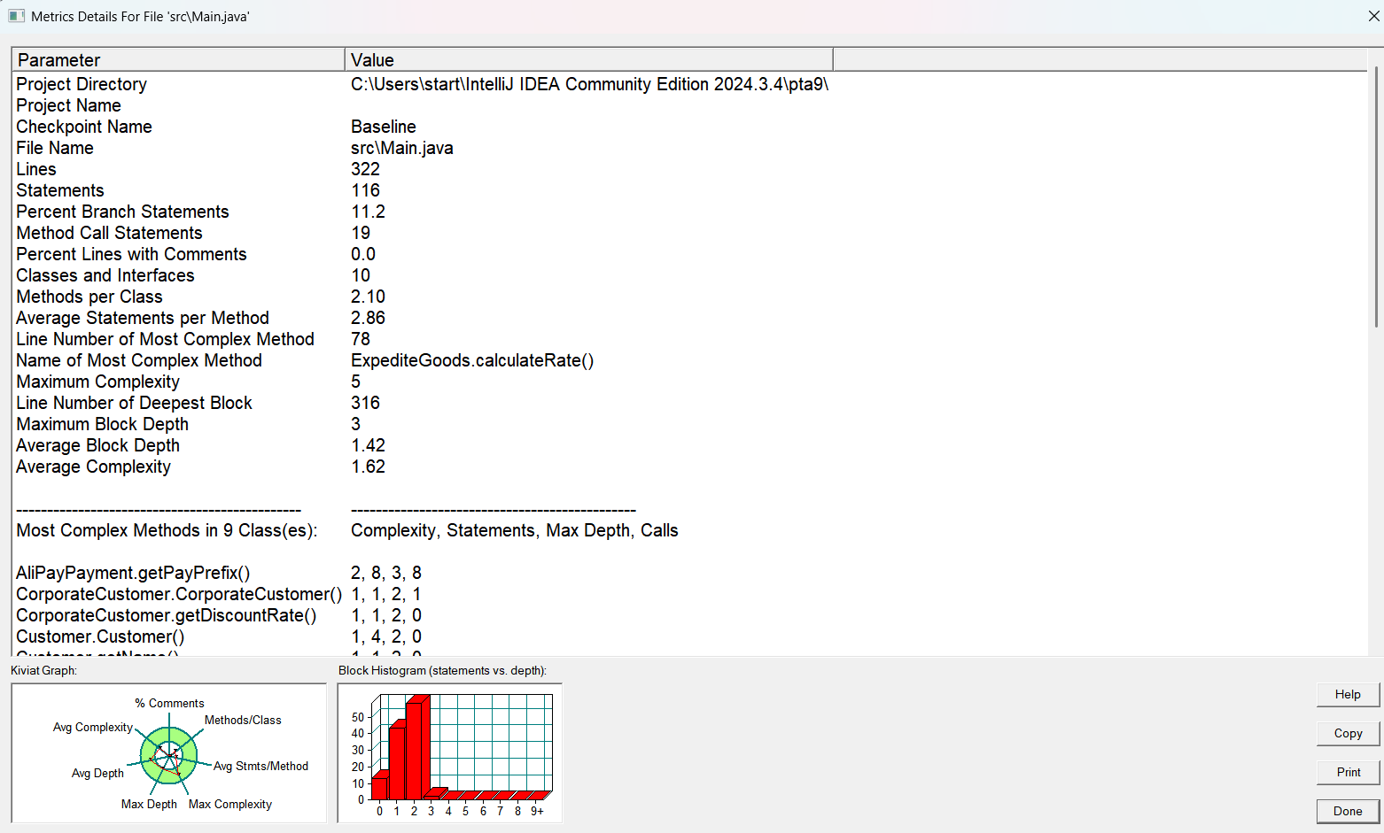 平均复杂度:1.44,整体逻辑简单,但Order类承担过多职责。